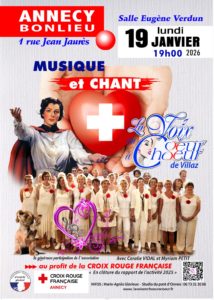 La Voix en Chœur à Cœur de Villaz est très heureuse de se produire pour La Croix-Rouge Française d’Annecy à Bonlieu dans la salle Eugène Verdun le lundi 19 janvier 2026 à partir de 19h. Un moment de partage et de générosité des choristes dirigés par Coralie VIDAL et Myriam PETIT, musicienne au cor des …