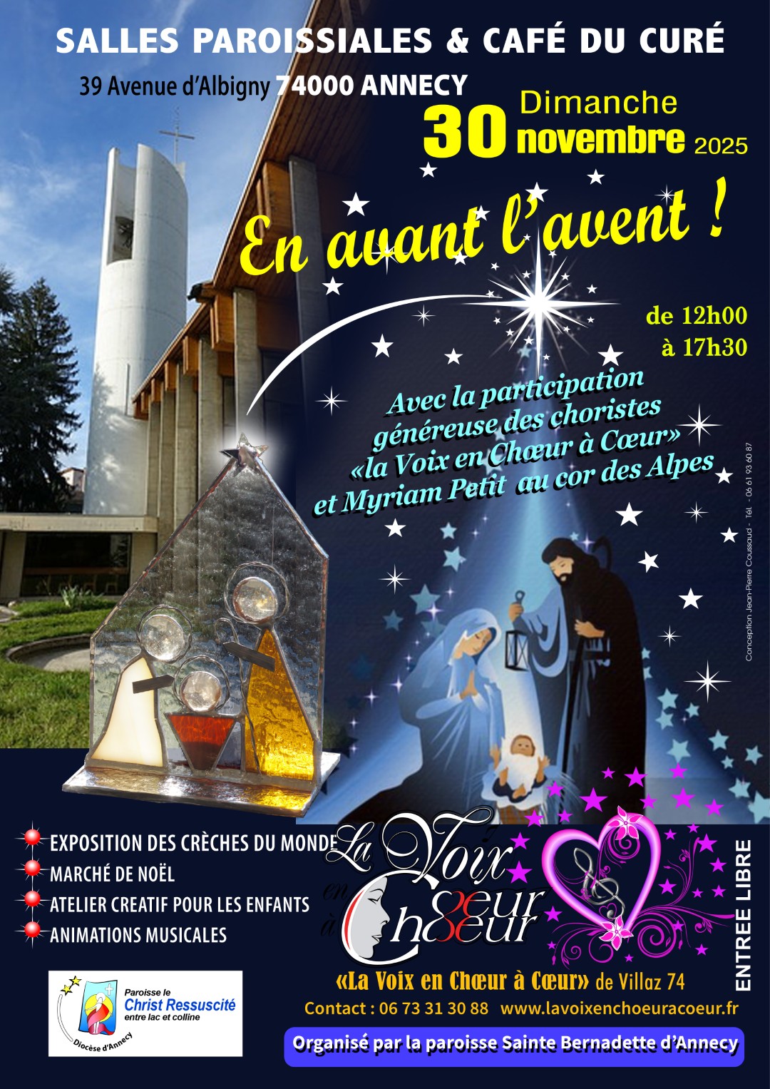 Le dimanche 30 novembre à 14h à la salle paroissiale de l’église Sainte Bernadette d’Annecy.